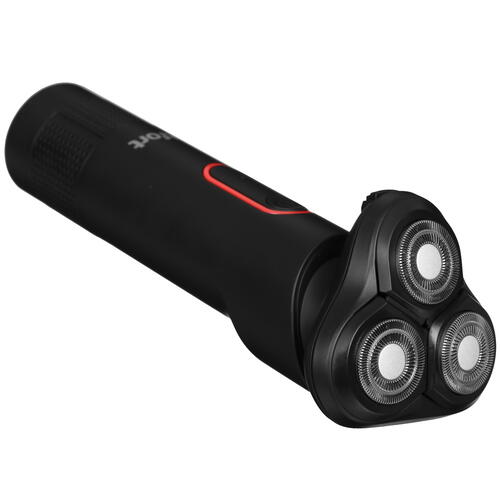 черный/красный, роторная, бритье: сухое, головок - 3, триммер, питание - от аккумулятора