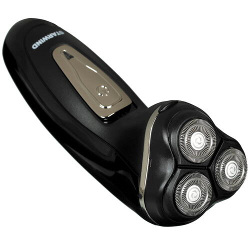 черный/серебристый, роторная, бритье: влажное/сухое, головок - 3, триммер, питание - от аккумулятора