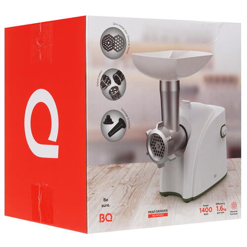 Мясорубка электрическая BQ MG1002 благодаря мотору мощностью 1400 Вт способна перерабатывать 1.6 кг продуктов за минуту. В модели реализован 1 скоростной режим, который включается позиционной клавишей. Функция реверса активирует вращение шнека в обратном направлении, если необходимо избавиться от застрявших кусочков.