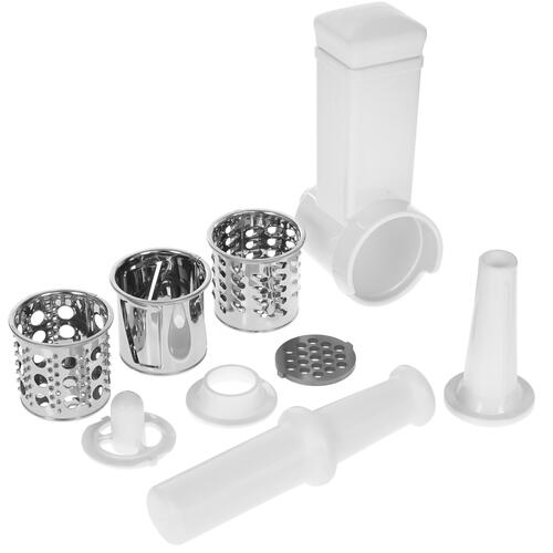 Корпус и загрузочный лоток изготовлены из пластика с гладкой поверхностью, поэтому практичны в уходе. Насадка-овощерезка с 3 сменными цилиндрами облегчает заготовку продуктов для салата, первых и вторых блюд, закусок. В комплекте с мясорубкой BQ MG1002 поставляются также диски с отверстиями 5 мм и 7 мм для фарша, насадки для приготовления домашних колбасных изделий. На основании корпуса расположены противоскользящие ножки, которые защищают прибор от смещения.