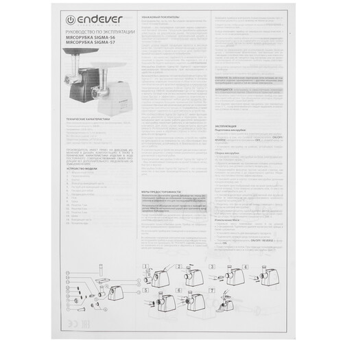 Мощность ENDEVER SIGMA-56 соответствует 1800 Вт, за счет чего вы сможете за одну минуту получить до 2.2 кг фарша. Однородная консистенция фарша обусловлена использованием острого ножа, изготовленного из кованой высококачественной стали. Металлические детали корпуса не окисляют продукты при контакте, обеспечивают надежность и долговечность устройства. Двигатель аппарата защищен от перегрузки, которая активируется при затрудненной работе двигателя при наматывании на шнек жил. Благодаря реверсу вам удастся нажатием кнопки прокрутить в обратную сторону шнек для его освобождения от продукта.