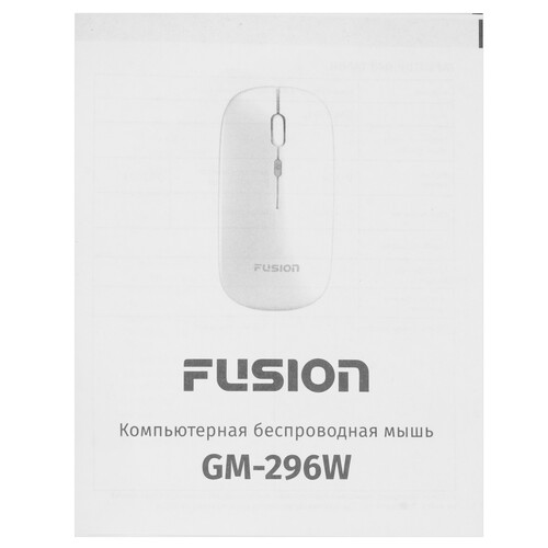 Мышь беспроводная Fusion GM-296W в выполненном из белого матового пластика корпусе подходит для использования с компьютером или ноутбуком. Устройство ввода с 4 переключателями имеет отдельную кнопку для настройки режима чувствительности сенсора. Оптический светодиодный сенсор модели может работать в разрешении 800-1600 dpi. Дизайн мышки адаптирован для управления как правой, так и левой рукой.