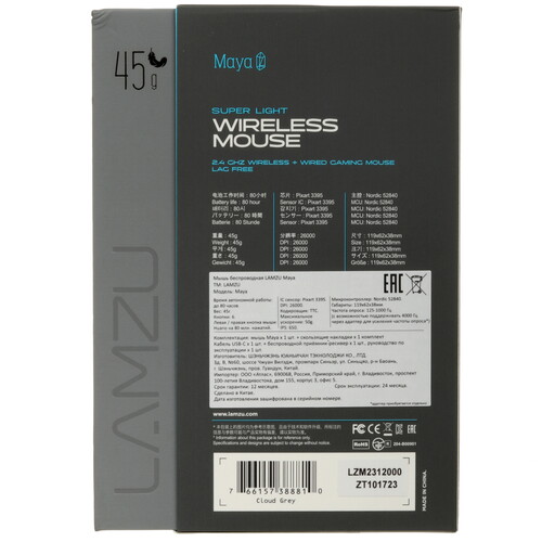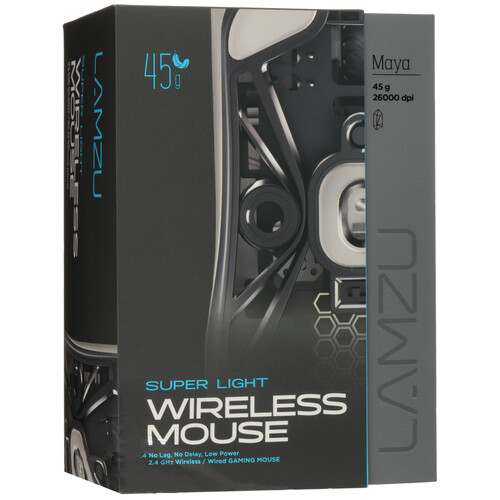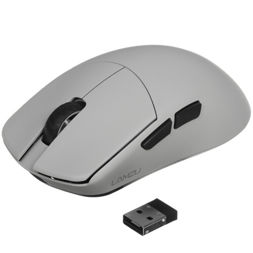 Мышь беспроводная/проводная LAMZU Maya облачена в серый корпус из матового пластика, фактура которого не собирает на себе отпечатки пальцев. Особенностью модели является поддержка проводного и беспроводного подключения: вы можете синхронизировать манипулятор с компьютером при помощи 1.8-метрового кабеля USB Type-A или радиоканала с дальностью действия 1.8 м. Встроенный аккумулятор обеспечит продолжительную автономную работу мыши LAMZU Maya на одном заряде. Симметричная форма корпуса гарантирует удобство при использовании устройства правой или левой рукой.