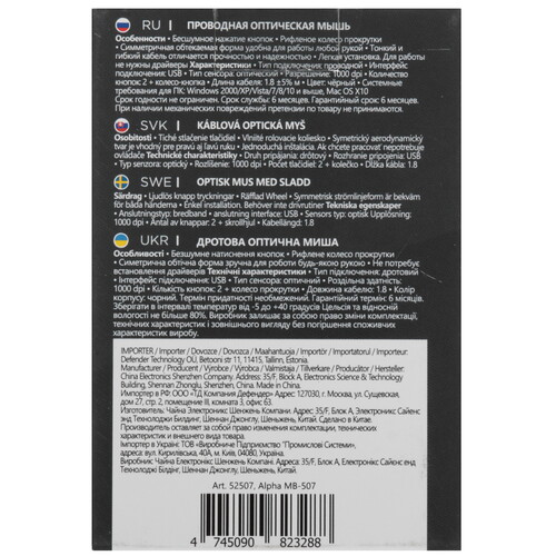 Мышь проводная Defender Alpha MB-507 – компактный манипулятор с размерами корпуса 62x35x101 мм, который подойдет для повседневной работы за компьютером или ноутбуком. Длина кабеля 1.8 метров позволит с удобством пользоваться устройством и не будет ограничивать вас в движениях при его перемещении по компьютерному столу. Проводная мышь Defender Alpha MB-507 со стандартной трехкнопочной конструкцией обладает симметричной формой корпуса для удобства управления как правой, так и левой рукой. Благодаря бесшумным кнопкам вы не будете мешать окружающим громкими кликами при работе за компьютером.