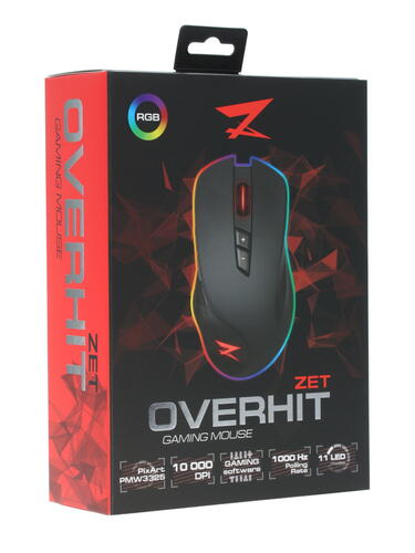 Основной цвет мыши ZET GAMING Overhit – черный. Присутствует RGB подсветка, которая улучшает оформление изделия. Для стилизации применяется логотип производителя.