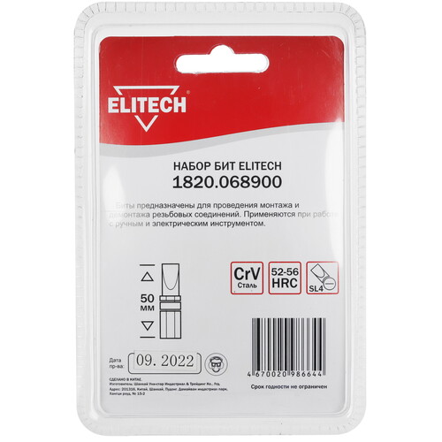 Набор бит ELITECH 1820.068900, CrV, 5 штук, блистер, SL4 x 50мм.