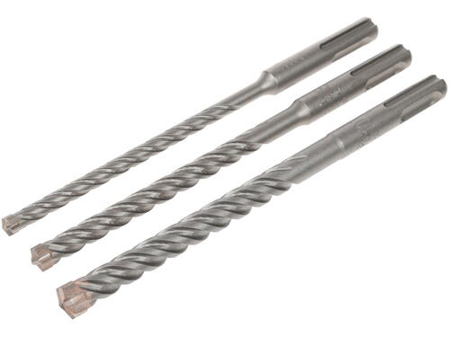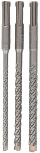 Вошедшие в состав комплекта Bosch 2608833912 буры в количестве 3 штук помещены в пластиковую упаковку-тубус. Полная длина каждого элемента оснастки составляет 160 мм. Изделия укомплектованы хвостовиком SDS Plus-5X, гарантирующим их надежную фиксацию в патронах электроинструмента, рассчитанного на работу с ударной оснасткой. Изготовленная в форме спирали рабочая часть каждого бура удаляет из проделываемого отверстия сверлильную пыль и не перегревается в процессе работы.