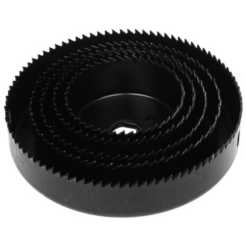 В набор поставки входят 5 коронок. Они отличаются по диаметру, размеры элементов составляют от 64 до 127 мм. Дополнительно производитель предоставляет державку с центрирующим сверлом, проставку, шестигранный ключ.