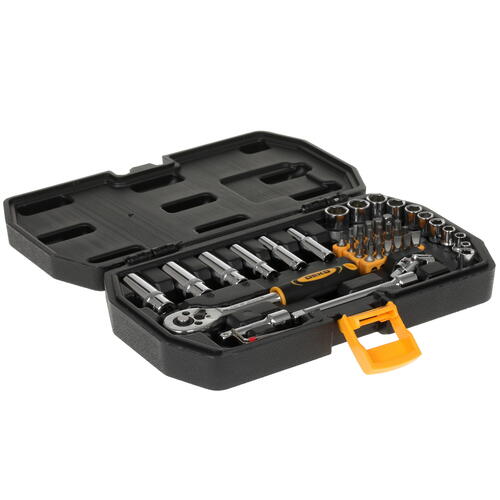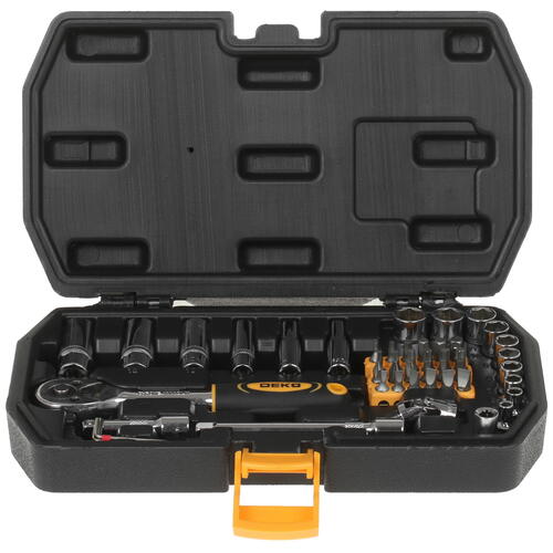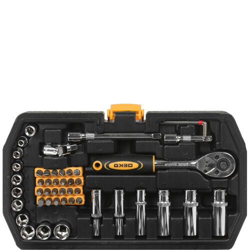 Набор инструментов DEKO DKMT49 создан для автовладельцев, домашнего использования и небольших мастерских. В наборе из 49 предметов поставляются стандартные и глубокие торцевые головки разного размера, сменные биты, удлинители, трещоточный ключ, карданный шарнир. Все инструменты выполнены из высококачественной стали, поэтому отличаются устойчивостью к повреждениям и различным неблагоприятным воздействиям в эксплуатации. Для удобного размещения и транспортировки в наборе с инструментами DEKO DKMT49 поставляется практичный пластиковый кейс.