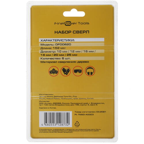 Набор сверл FinePower DFD0620 – это универсальное решение для создания сквозных и глухих отверстий в твердых и мягких породах дерева, а также в изделиях на его основе. Благодаря высокой производительности и надежности оснастка может стать отличным выбором как для бытового, так и для профессионального применения в сфере ремонта и строительства. Инструменты предназначены для установки на обычные и ударные дрели, а также дрели-шуруповерты разной мощности и используют для этого стандартный хвостовик цилиндрической формы.