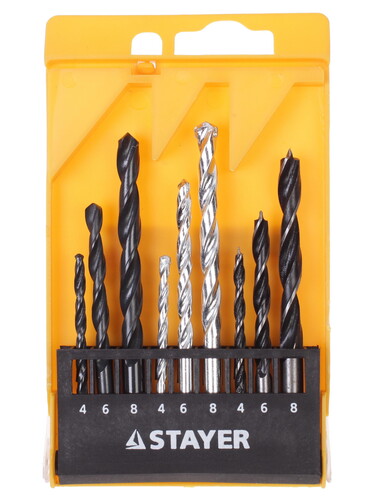 Набор сверл комбинированный STAYER "STANDARD" 29720-H9 применяется для сверления металлических деталей и заготовок, массива древесины и деревянных конструкций, строительного кирпича и пористого бетона. Основным преимуществом комбинированных наборов сверл является универсальность применения при выполнении работ по различным материалам.