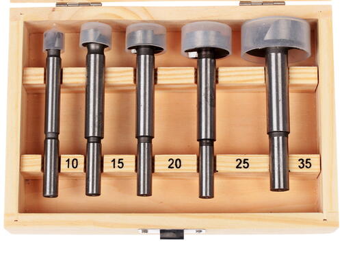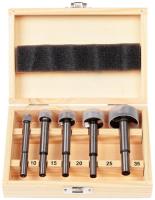 Форстнера, ⌀ по дереву - 10 мм, 15 мм, 20 мм, 25 мм, цилиндрический/8 мм, количество - 5 шт, контейнер
