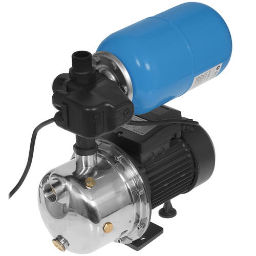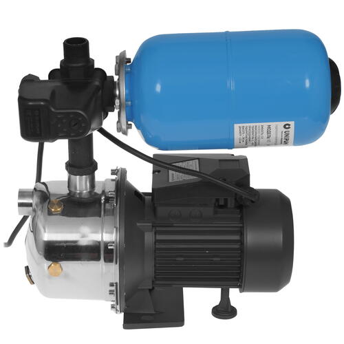 Unipump AUTO JS 100-5 обладает мощностью 750 Вт, поддерживает высокую производительность ‒ на уровне 55 л/мин. Оборудование срабатывает по заданным порогам давления. Когда уровень воды в баке гидроаккумулятора снижается, уменьшается давление, после чего реле включает насос. Как только все работы закончены, уровень воды в баке достигает максимальной отметки, давление повышается, и насос отключается. Контроль над значением давления обеспечивает встроенный манометр.