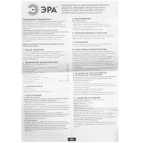 Регулируйте направление светового потока в соответствии с текущими нуждами – для этого плафон настольного светильника ЭРА N-211-E27-40W-BU предусмотрительно дополнен регулируемой конструкцией. Представленную модель отличают не только весьма скромные размеры, но также простота и удобство при эксплуатации – так, перед ее использованием потребуется лишь установить лампу накаливания с цоколем Е27. Прочный пластик, который производитель использовал в качестве основного материала при создании корпуса, легко очищается от накопившихся загрязнений и сохраняет эстетичный вид на протяжении всего срока эксплуатации.