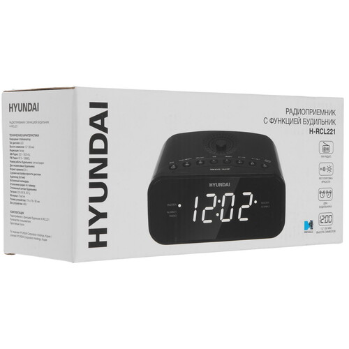 Радиобудильник Hyundai H-RCL221 поддерживает диапазон FM от 87.5 до 108 МГц. В модели реализована белая подсветка дисплея. Радиобудильник Hyundai H-RCL221 отображает время и дату.