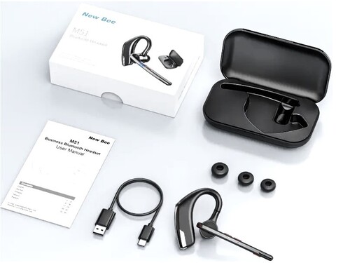 Беспроводная моногарнитура New Bee M51 оснащена батареей емкостью 115 мАч и комплектуется зарядным кейсом на 500 мАч, который поддерживает до 15 часов воспроизведения музыки и 12 часов разговоров. Полная зарядка занимает всего 1.5 часа. Встроенный двойной микрофон с технологией CVC 8.0 эффективно устраняет фоновый шум, обеспечивая четкость звука во время разговоров. Беспроводная гарнитура использует версию Bluetooth 5.2, что обеспечивает более стабильное соединение и совместимость с большинством Bluetooth-устройств. Кроме того, она может одновременно подключаться к двум устройствам, например, к двум телефонам или к одному телефону и одному ноутбуку. Микрофон можно поворачивать на 270 градусов, а ушной крючок - на 180 градусов, что позволяет свободно регулировать угол и носить гарнитуру на правом или левом ухе. Сбалансированный дизайн ушного крючка предотвращает случайное падение гарнитуры и равномерно распределяет вес на ухе. Вы можете отключить звук во время разговора по телефону, чтобы пообщаться с окружающими. Для активации голосового помощника нажмите и удерживайте кнопку в течение 3 секунд. Гарнитуру можно заряжать двумя способами: с помощью зарядного кейса или через кабель Type-C. Не используйте быструю зарядку или автомобильные зарядные устройства.