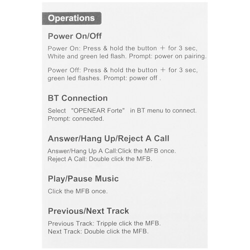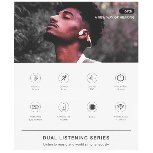 Беспроводные наушники ZDK Openear Forte открытого типа, поэтому для них характерно чистое, громкое звучание. В модели установлен фиксированный микрофон, который позволяет общаться по телефону, во время видеосвязи или в онлайн-играх. На корпусе устройства предусмотрен полный набор клавиш управления, с помощью этого мини-пульта можно воспроизводить или ставить трек на паузу, отвечать/завершать вызов, переключать музыкальные композиции.