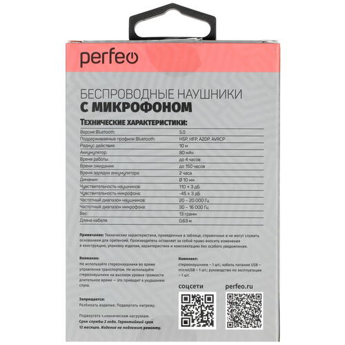 Bluetooth-гарнитура Perfeo BUDZ гарантирует качественный звук благодаря стереоформату звучания, обеспечивающему объемность, и стандартному диапазону воспроизводимых частот 20-20000 Гц. Технология Bluetooth 4.2 способствует широчайшей совместимости наушников с различными моделями смартфонов и планшетов, представленных на рынке. Микрофон в конструкции и пульт ДУ наделяет устройство функционалом гарнитуры, что позволит отвечать на звонки, оставляя при этом свободными обе руки. Встроенный аккумулятор рассчитан на четыре часа непрерывной работы.