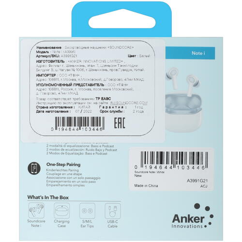 Наушники TWS Anker Soundcore Note i обеспечивают воспроизведение высококачественного звука. Они оснащены динамическими излучателями 10 мм и интегрированным микрофоном. Синхронизация с устройством осуществляется посредством технологии Bluetooth при извлечении из кейса.