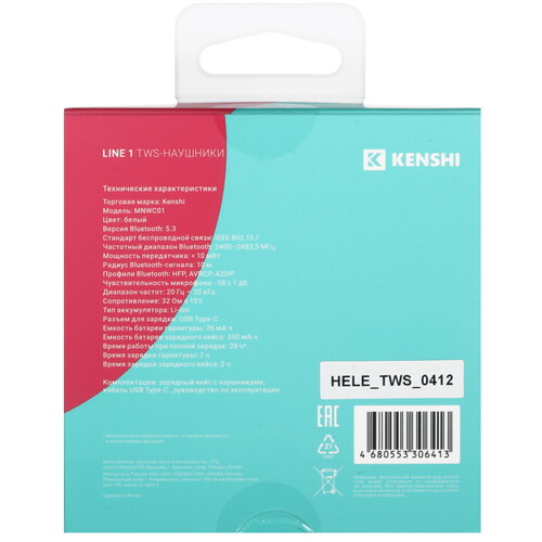 Наушники TWS KENSHI Line 1 белый 2024 [9093300]