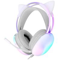 Проводная гарнитура DEXP GH-5000 Aurora выделяется белым полупрозрачным корпусом с ушками и встроенной многоцветной подсветкой. Динамические излучатели диаметром 50 мм формируют насыщенное звучание с четкостью воспроизведения деталей. Микрофон на гибкой штанге без искажений передает голос.