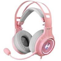 Для подключения гарнитуры используется USB-кабель, значительная (2.5 м) длина которого позволит вам с легкостью перемещаться вблизи компьютера. Особенность модели – разноцветная подсветка. Обращает на себя внимание и цветовое оформление устройства. Дизайн гарнитуры оформлен с помощью необычного сочетания серого и розового цветов.