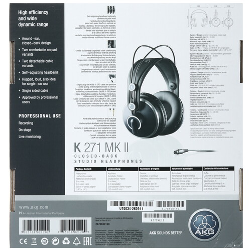 AKG K271 MKII — это охватывающие профессиональные наушники для студийного сведения и мониторинга, а также живых выступлений. Они идеально подходят для вокалистов и барабанщиков и созданы для наилучшего воспроизведения звука, а их полностью закрытая, герметичная конструкция обеспечивает высокую шумоизоляцию, низкое просачивание сигнала в студийные микрофоны и максимальную изоляцию для живого микширования. Помимо отличного качества звука и изоляции, наушники AKG K271 MKII чрезвычайно прочны и удобны. Их саморегулирующееся оголовье не только выдерживает бесчисленное количество часов работы в студии, но и обеспечивает идеальную посадку, а амбушюры мягко облегают уши. К прочим функциям относятся автоматический выключатель звука в оголовье, а также профессиональный разъем mini XLR. Наушники AKG K271 MKII также поставляются с 3-метровым прямым кабелем и 5-метровым спиральным кабелем, так что вы можете сразу начать слушать музыку, микшировать или проецировать. Знаменитые своей производительностью, простотой использования, комфортом и надежностью, в целом AKG K271 MKII — это поистине мощный инструмент для сведения и контроля записей.