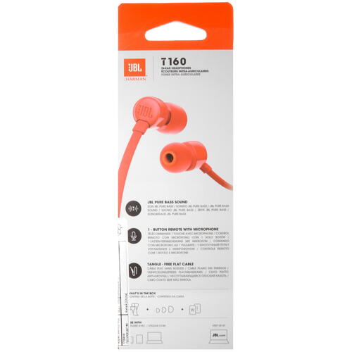 Проводная гарнитура JBL T160 представлена в красном цвете. Внутриканальная конструкция с силиконовыми вкладышами гарантирует комфортное размещение в слуховом канале. Динамические излучатели с мембраной диаметром 9 мм обеспечивают четкое и насыщенное звучание. Всенаправленный микрофон отвечает за чистую передачу голоса в процессе общения.