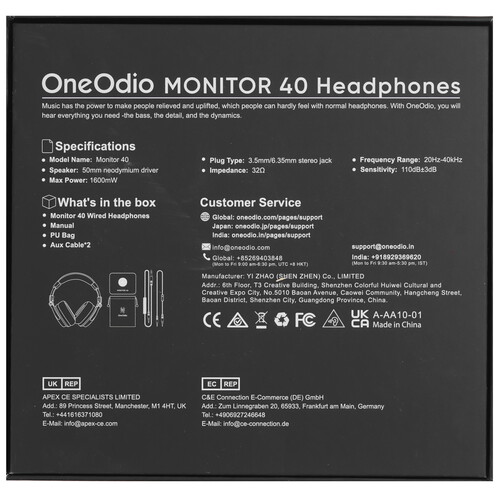 Проводные наушники OneOdio Monitor 40 черный [9099289]