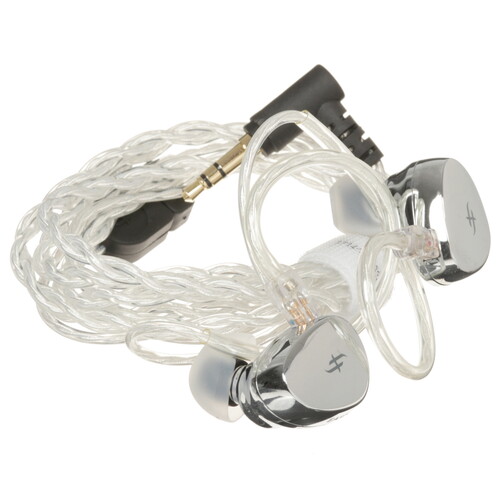 Проводные наушники Simgot EA500 представлены в серебристом корпусе из металла. Мягкие силиконовые амбушюры плотно прилегают к ушам, не вызывают дискомфорт и минимизируют посторонние шумы. Крепления-клипсы надежно фиксируют наушники на голове.