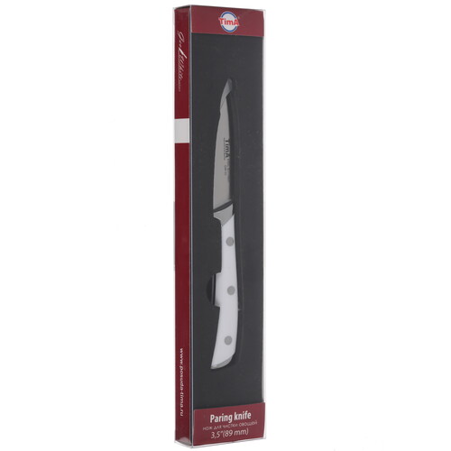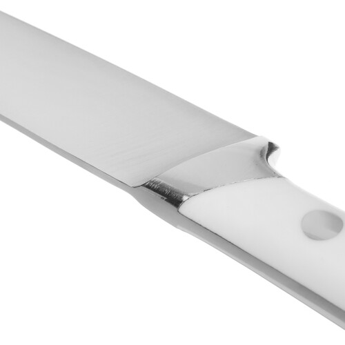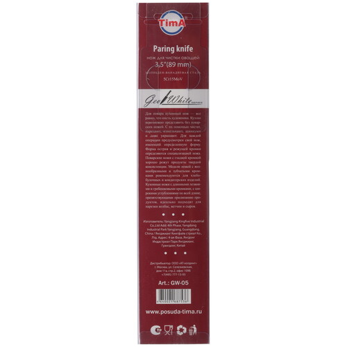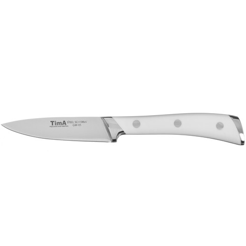 Нож Tima GeoWhite GW-05 оснащен удобной для удержания пластиковой ручкой. Лезвие из нержавеющей стали с антибактериальным покрытием устойчиво к коррозии и деформациям. Нож не боится замачивания и мытья в ПММ.