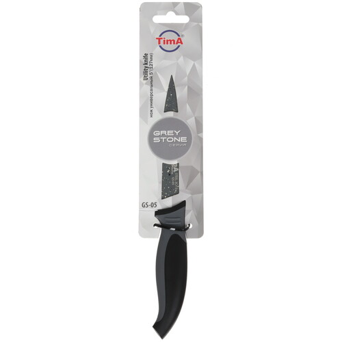 Эргономичная рукоятка универсального ножа для нарезки и измельчения TimA GreyStone GS-05 не скользит даже во влажных руках. Лезвие изделия при необходимости легко затачивается при помощи специальных приспособлений и долго остается острым после заточки. Чтобы сохранить ресурс лезвия и избежать его повреждений, осуществляйте нарезку продуктов не на твердых поверхностях, а на специальных разделочных досках из пластика или мягкого дерева.