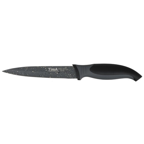 Нож TimA GreyStone GS-05 с длиной лезвия 127 мм подходит для применения на домашней кухне или в заведении общественного питания. С помощью универсального кухонного ножа можно порезать мясо, рыбу, овощи, фрукты и другие неплотные продукты перед приготовлением. Благодаря изготовлению из нержавеющей стали металлическая часть ножа уверенно противостоит коррозии и отличается длительной службой.