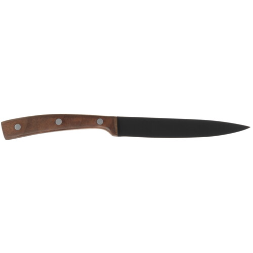 Нож овощной Tima Village VL–105 имеет титанизированное антипригарное покрытие лезвия длиной 89 мм и толщиной 1.7 мм. Изделие выполнено из нержавеющей хромованадиевой стали, легко точится, не подвержено коррозии и прослужит десятилетия. Деревянная рукоять Tima Village VL–105 черного цвета удобно лежит в руке при использовании. Нож предназначен для нарезки овощей и фруктов. Кухонный инструмент можно мыть в посудомоечной машине.