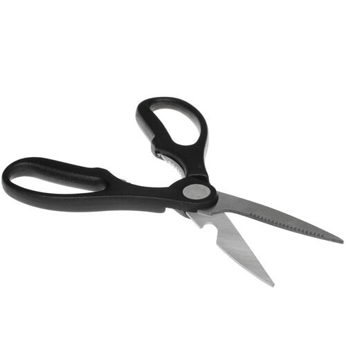 Ножницы кухонные Aceline A3SI019 универсальные с продуманной конструкцией позволяют измельчать зелень, разделывать птицу, рыбу, резать и вскрывать упаковки с продуктами, а также выполнять другие операции, связанные с приготовлением пищи. Модель обладает пластиковыми колечками, которые удобно лежат в ладони и не выскальзывают из нее. Лезвия изготовлены из нержавеющей стали, отличаются увеличенной прочностью.
