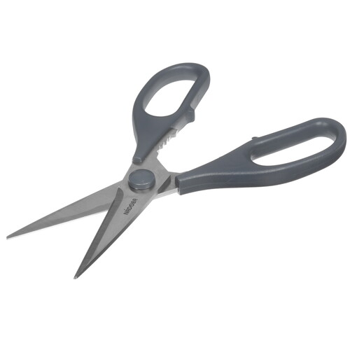 Ножницы кухонные Nadoba Inge 724110 длиной 95 см универсальные и подойдут для резки разных материалов. Лезвия выполнены из нержавеющей стали, режут точно и быстро. Металл износостойкий, устойчив к коррозии. Зазубренная область обеспечивает надежное сцепление с разрезаемыми предметами, предотвращает их скольжение. Ось имеет усиленное крепление. Это исключает зазор и люфт во времени использования.