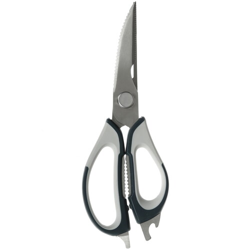 Ножницы кухонные SATOSHI Ривьера 882-404 серебристого цвета универсальные и подойдут для резки разных материалов. Лезвия сделаны из нержавеющей стали, режут точно и быстро. Материал износостойкий, устойчив к коррозии. Ось имеет усиленное крепление. Это исключает зазор и люфт во времени использования.