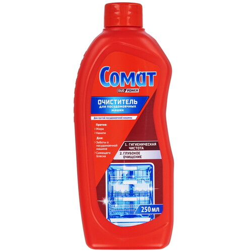 Очиститель Сомат предназначен специально для профилактической очистки посудомоечной машины, а не для мытья посуды. Несмотря на использование мягкой воды и правильную эксплуатацию техники, на деталях посудомоечной машины может образовываться налет. Если его не удалять, налет может стать питательной средой для размножения бактерий, что приведет к появлению неприятного запаха. Чтобы избежать этой проблемы, рекомендуется регулярно использовать чистящее средство для посудомоечных машин.