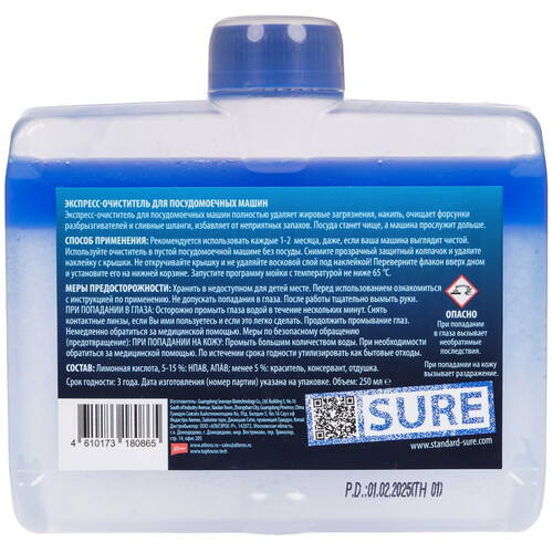 жидкость, 250 мл, количество циклов мойки - 1