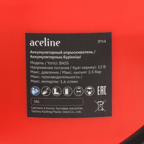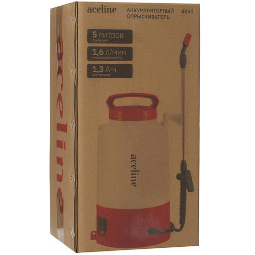 Aceline BAS5 – аккумуляторный опрыскиватель для фермерских, парковых или садово-огородных хозяйств. Пригодится для опрыскивания деревьев водой, удобрениями, пестицидами. Объём бака – 5 литров. Максимально давление – 2.5 бара. Оно настраивается с помощью кругового регулятора и позволяет управлять дальностью разбрызгивания.