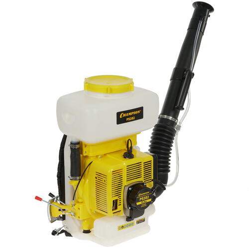 Опрыскиватель-распылитель Champion PS282 позволяет выполнять распыление жидких химикатов и удобрений на приусадебных участках. Данная модель функционирует на основе бензинового двигателя 5.4 л.с, благодаря чему обеспечивает высокую эффективность выполнения работ. Champion PS282 характеризуется дальностью распыления 22 м, вместительным пластиковым баком объемом 16 л с широкой горловиной для простого заполнения и ранцевым исполнением с мягкими плечевыми ремнями. Вместе с инструментом поставляются принадлежности для обслуживания инструмента.