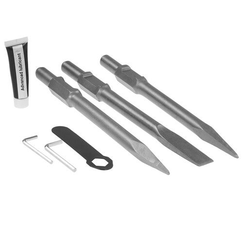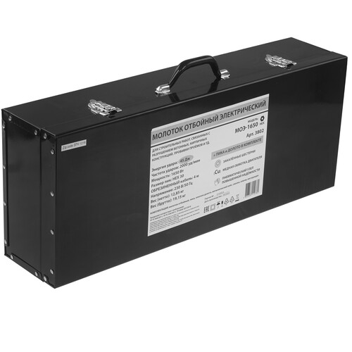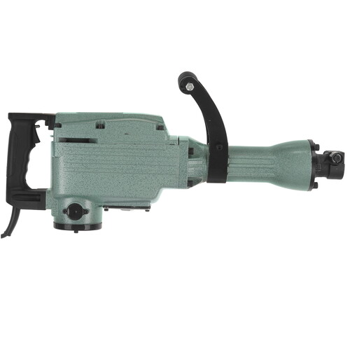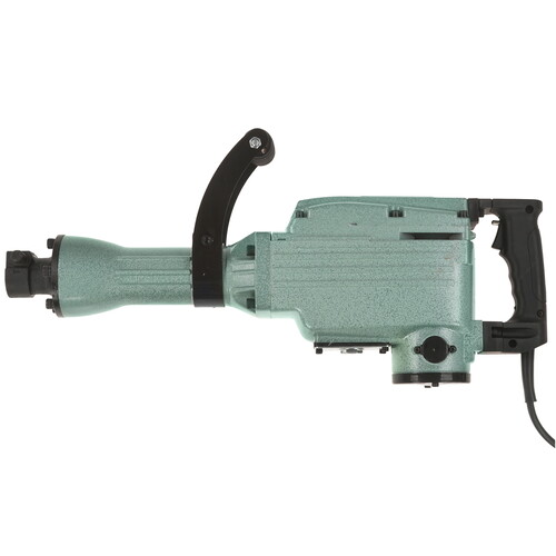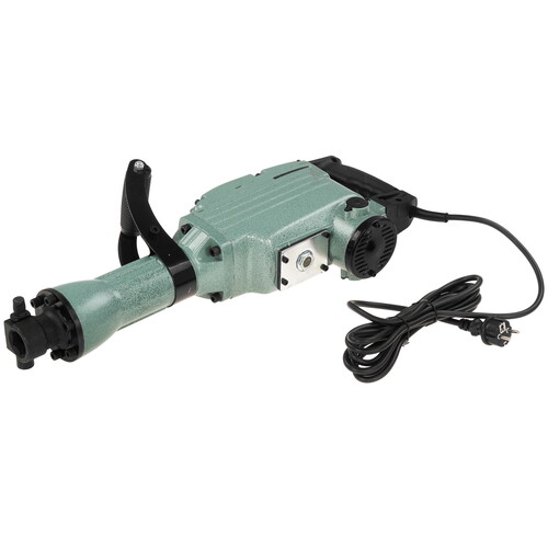 Отбойный молоток - ударно-механический инструмент для разрушения твердых материалов. Обладает однофазным высокомощным электродвигателем (1.65 кВт), подключается к розетке четырехметровым кабелем. Для фиксации двигающейся от импульса пики используется шестигранный патрон.