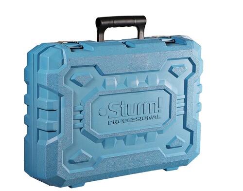 Вместительный пластиковый кейс позволяет с удобством переносить и хранить инструмент и аксессуары.