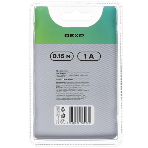 Чтобы обеспечить флеш-накопителям, оптическим приводам, жестким дискам и прочей компьютерной периферии быстрое и надежное подключение к ПК или ноутбуку, используйте OTG-кабель DEXP. Это оранжевого цвета аксессуар, который также можно использовать для подключения мобильных устройств, он надежен, долговечен, поскольку выполнен из износостойких экологичных материалов по самым передовым технологиям. С OTG-кабелем DEXP вы не столкнетесь с такими проблемами как перекручивания и заломы. Длина аксессуара составляет 0.15 м.