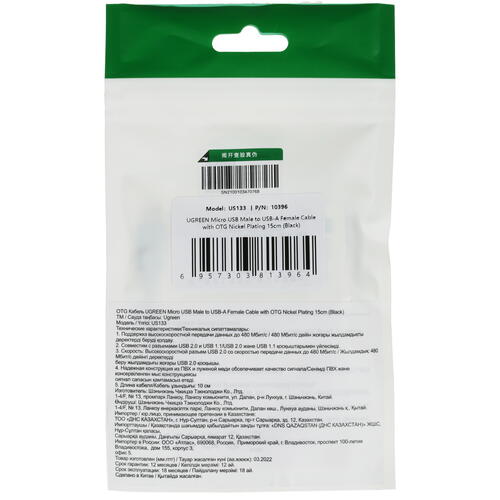 OTG-кабель Ugreen обеспечивает организацию передачи информации между смартфоном, планшетом и другой техникой, в которых предусмотрен разъем USB. Он оснащен разъемом micro USB и выходом USB, к которому можно подключать необходимые устройства.OTG-кабель Ugreen обладает длиной 0.15 м и поэтому имеет компактные размеры. Гибкая прочная оплетка уберегает внутренние провода от неблагоприятных внешних воздействий.