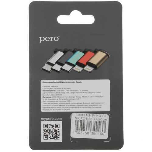 OTG-переходник PERO серебристый [5474188]