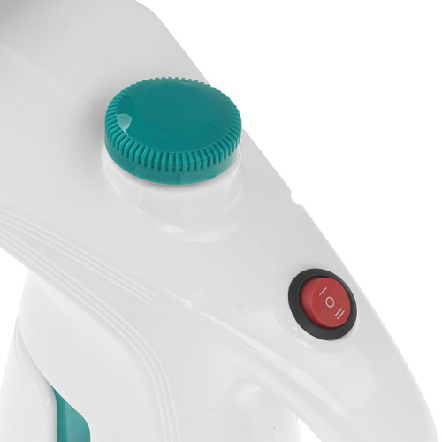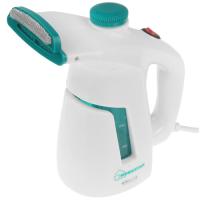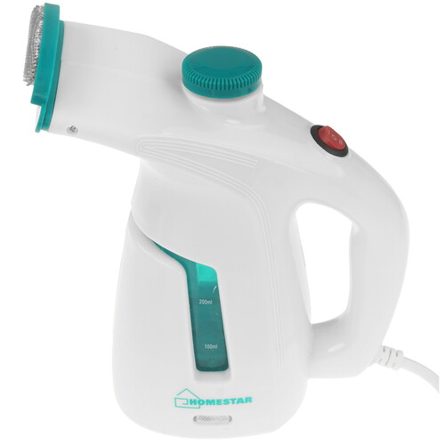 Отпариватель HOMESTAR HS-7002 в корпусе белого цвета имеет 0.2-литровый резервуар для воды с мерной шкалой для отслеживания остатка содержимого. Температура пара достигает 98 °C. Кнопка включения находится на ручке прибора.
