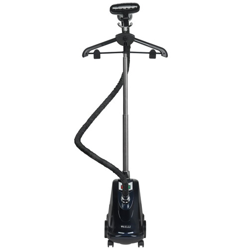 KELLI KL-7 с 2 режимам отпаривания оборудован телескопической стойкой с регулируемой высотой. Конструкция включает вешалку для одежды и зажимы для брюк, а также полотно для вертикальной поддержки. В основании устройства находятся колесики для перемещения в необходимое место без ущерба для напольного покрытия.