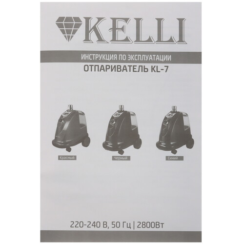 Отпариватель KELLI KL-7 в корпусе синего цвета имеет мощность 2800 Вт, благодаря которой удаляет складки даже с тяжелых тканей и подходит для ухода за зимними вещами. Нагрев воды из 3-литрового съемного бака занимает не более 50 сек. Кнопка-фиксатор предназначена для постоянной подачи пара. Выполненная из металла подошва не подвержена появлению коррозийного налета.