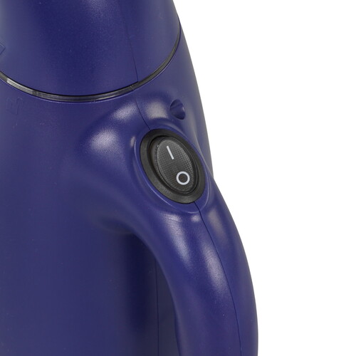 MAUNFELD MF-1133BL выполнен в синем пластиковом корпусе с удобной для удержания текстурной ручкой. Объема бака 170 мл хватает на 9 минут работы без дозаправки водой. На боковой стенке есть прозрачное окно с отметками нижнего и верхнего пределов для контроля за количеством оставшейся жидкости.